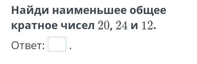 найди наименьшее общее кратное чисел 20 , 24 и 12