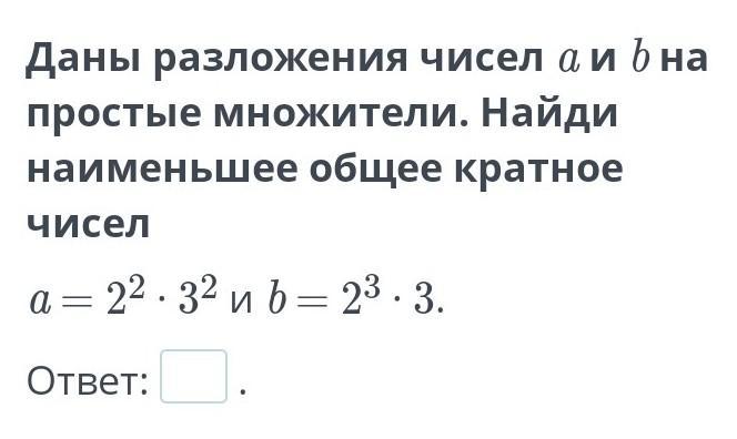 даны разложения чисел a и b на простые множители найди наименьшее общее кратное чисел
