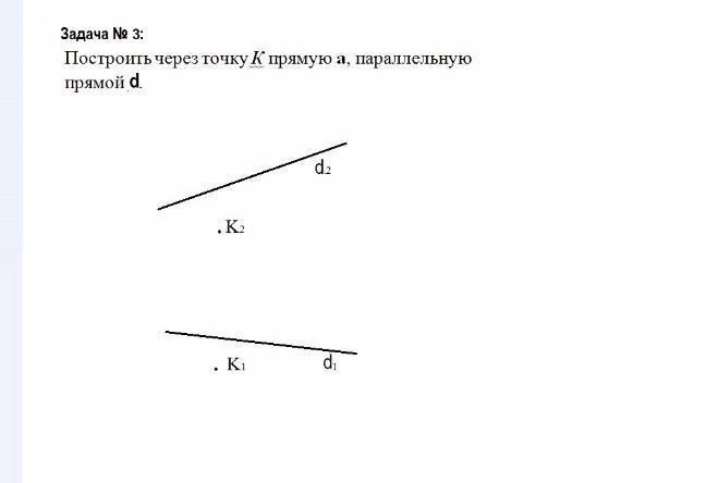 Полученные прямые - искомые проекции прямой, проходящей через точку К параллельно d.