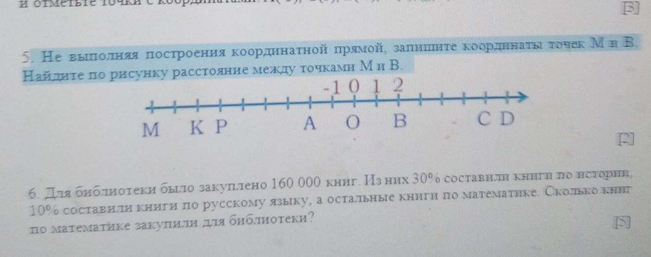 . Не выполняя построения координатной прямой, запишите координаты точек М и В. Найдите по рисунку расстояние между точками М и В.