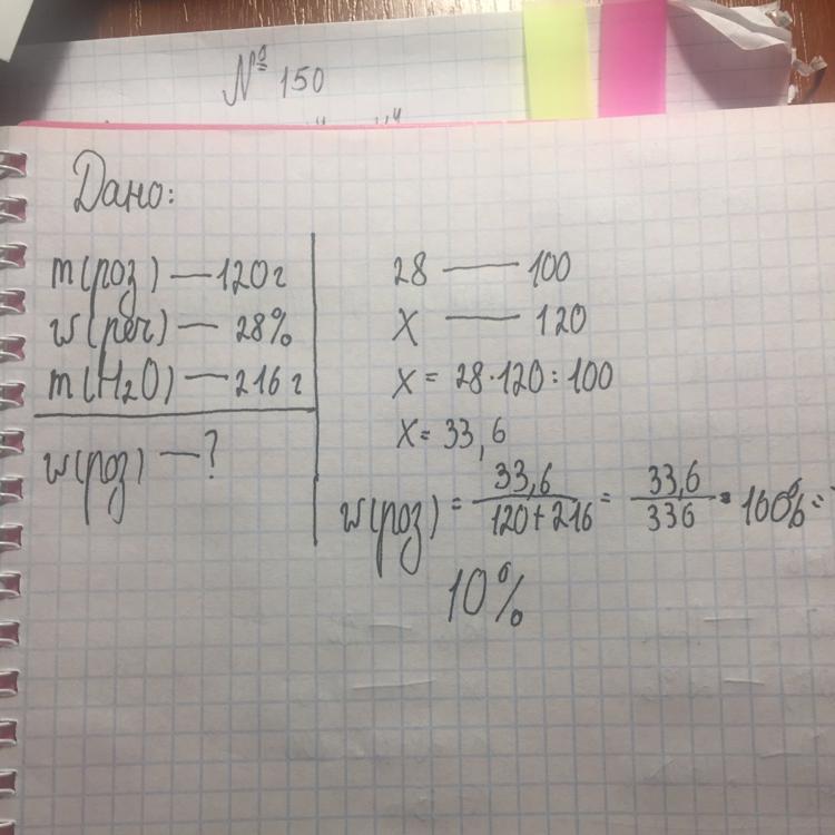 К 120г раствора соли с массовой долей 28 прилили 216мл воды. Какова массовая доля соли в полученном растворе?