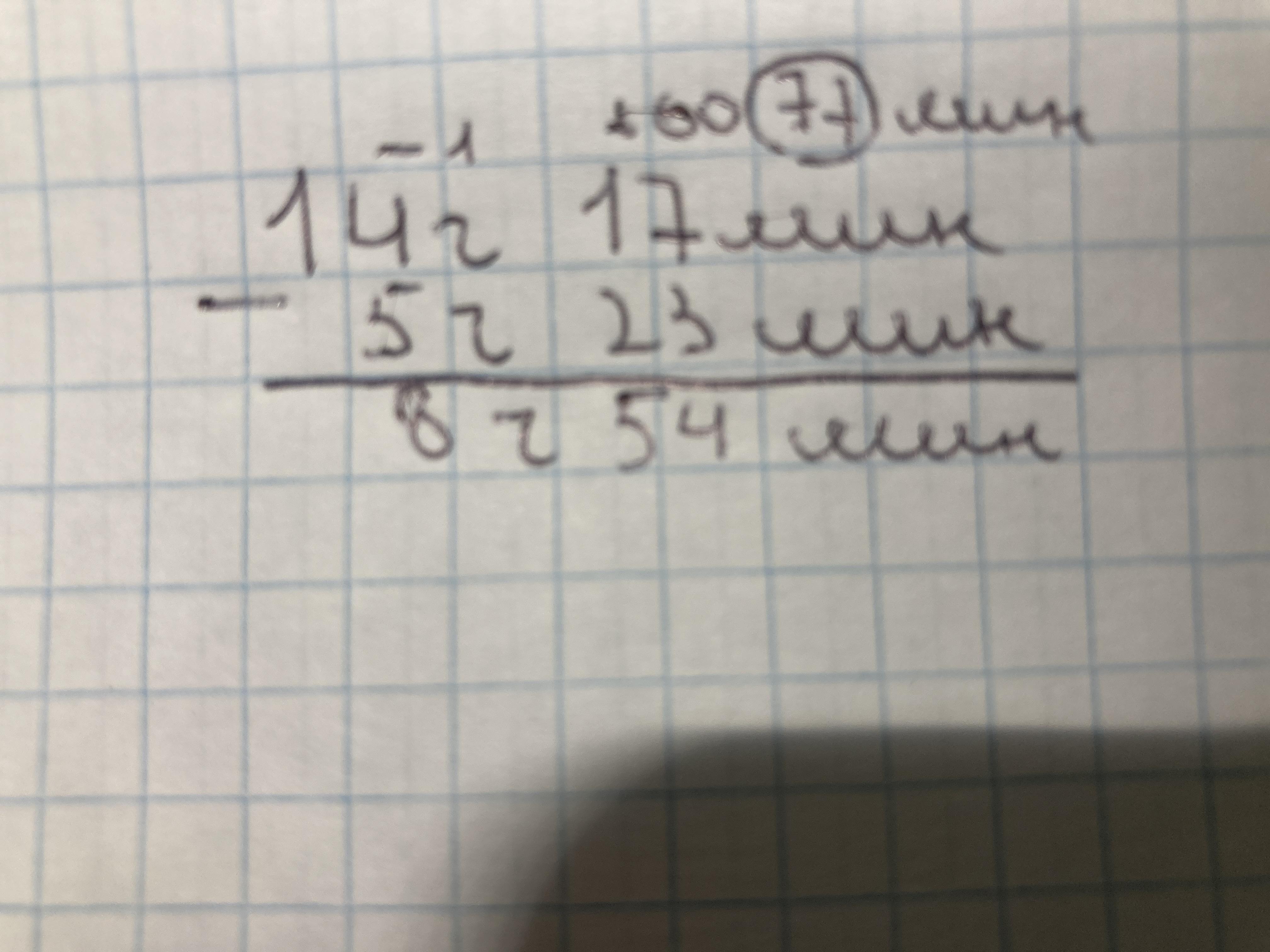 2) 14 ч 17 мин - 5ч 23 мин. в столбик
