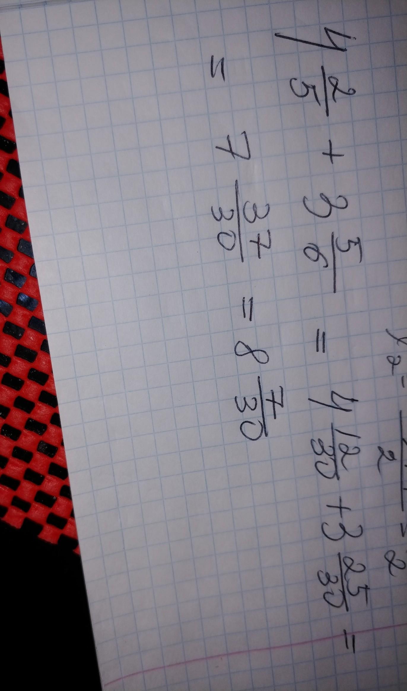 4 2/5 + 3 5/6=4 12/30 + 3 25/30= 7 37/30 =8 7/30