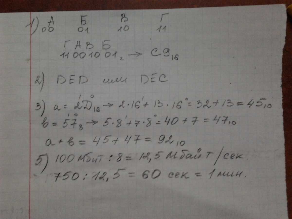 Для кодирования букв А,Б,В,Г решили использовать двухразрядные последовательные двоичные числа(от 00 до 11,соответственно).Если таким способом закодировать последовательность символов ГАВБ и записать результат в шестнадцатеричной системе счисления,то что получится?
