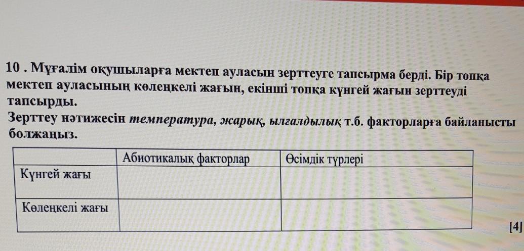 Көлеңкелі жағы Абиот. фактор температура төмен жарық аз ылғалдық жоғары.