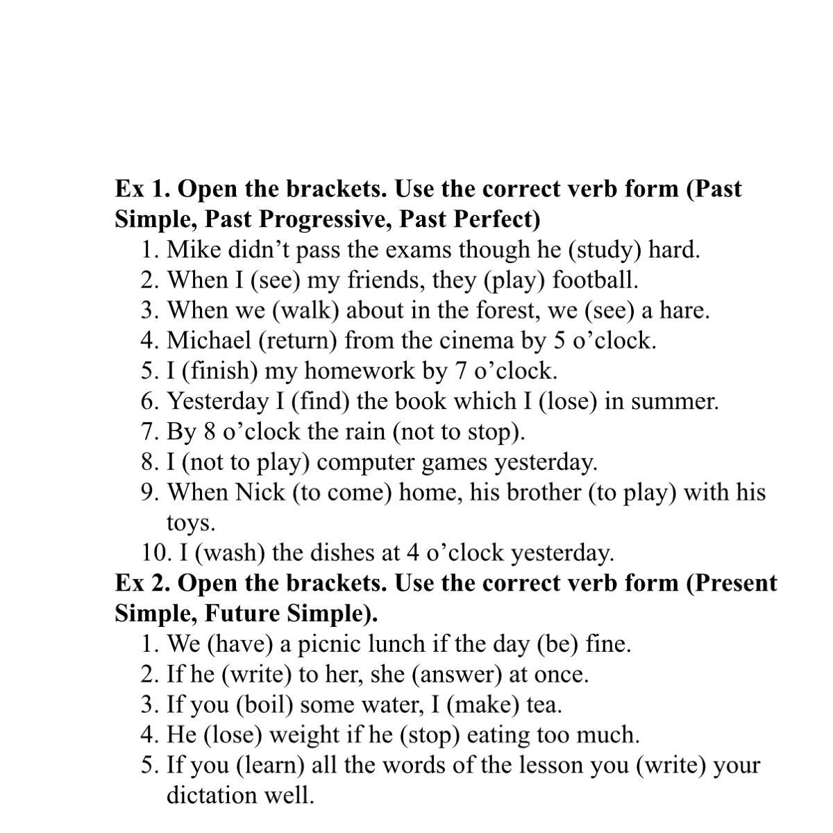 Ex 1. Open the brackets. Use the correct verb form (Past Simple, Past Progressive, Past Perfect)