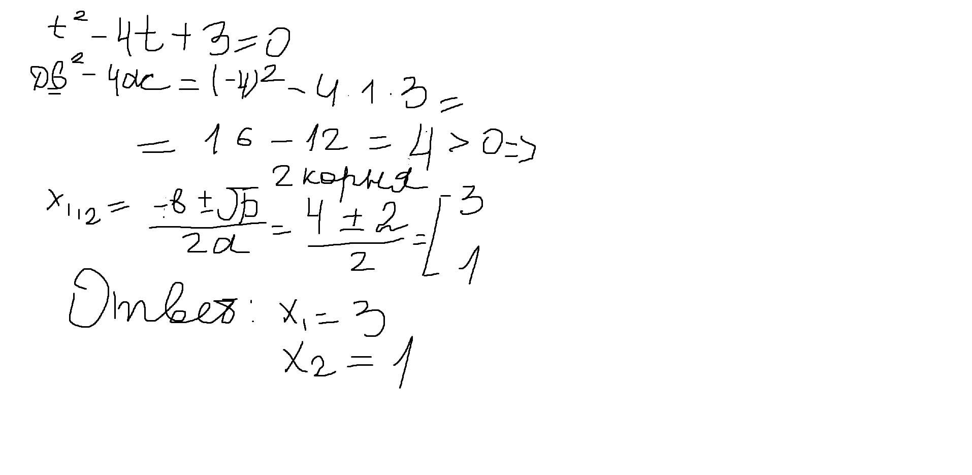 t2=(4-2)/2=1 и уравнение решено ответы 3 и 1