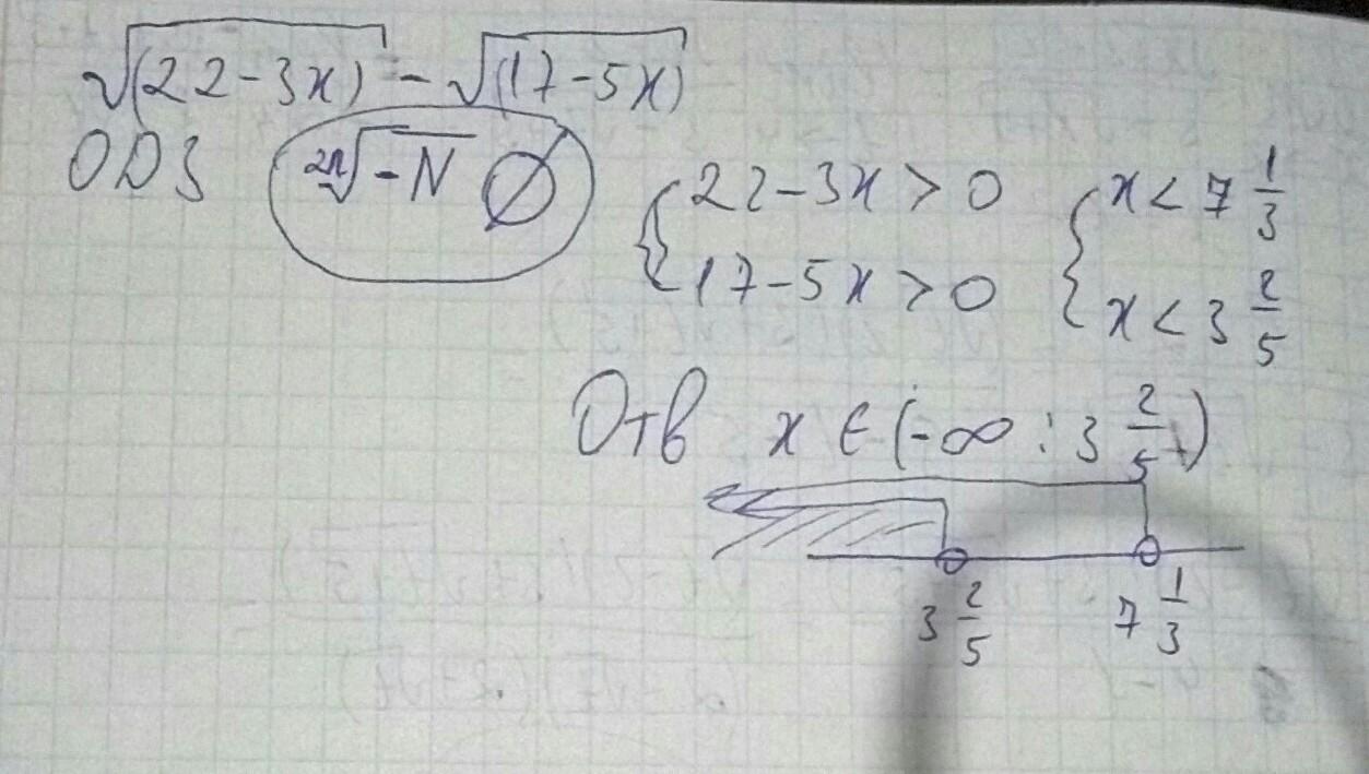 За яких значень х вираз √(22 - 3x) - √(17 - 5x) має зміст?
