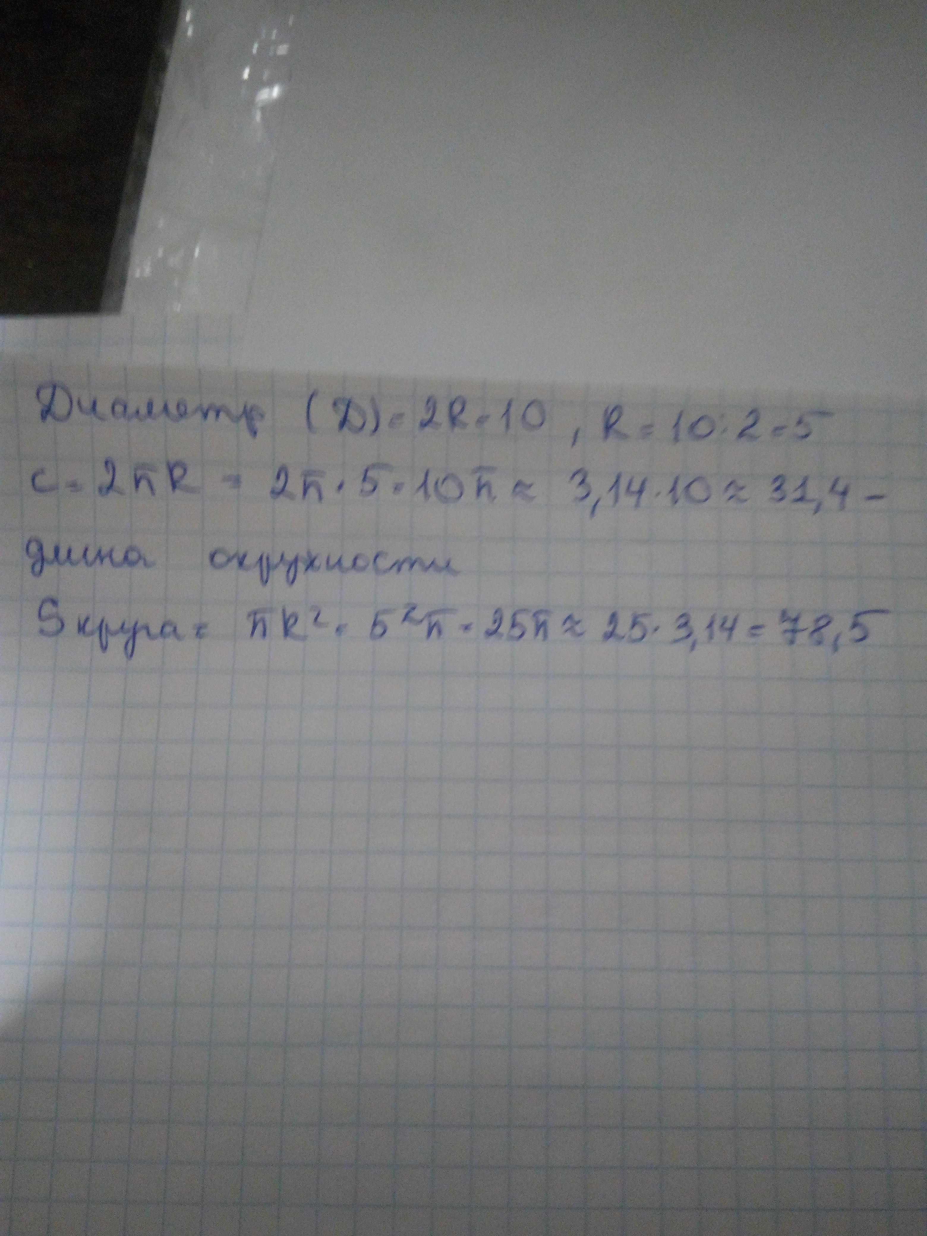 Диаметр окружности равен 10 (π≈3,14). [3]