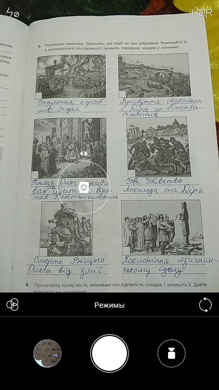1- поклоніння ідолу, 2- прибуття Аскольда і Діра , 3- смерть Аскольда і Діра, 4- Олег прибиває щит на воротах Конститинополя 5- спалення кораблів Ігоря,6- смерть віщого Олега
