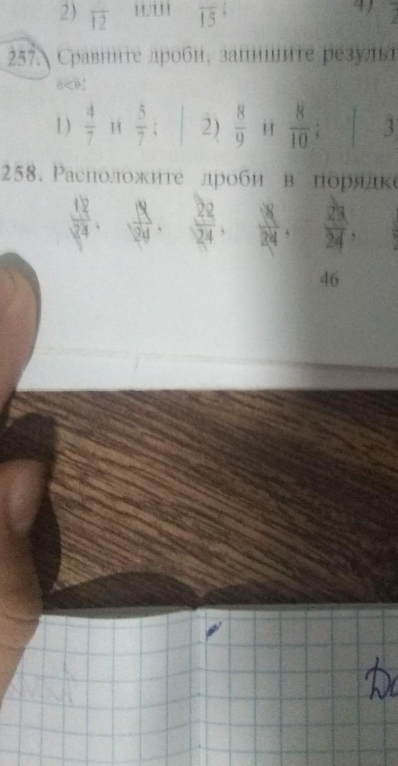 1) 4/7<5/7 - числители: 4<5 при равных знаменателях: 7=7.