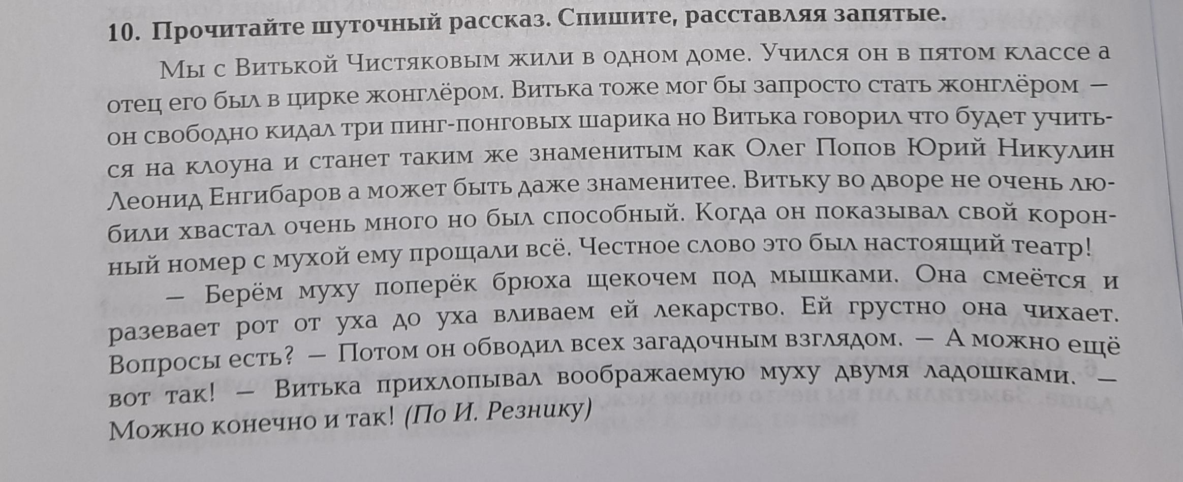 -Берем муху поперек брюха, щекочем под мышками. Она смеётся и разевает рот от уха до уха, влииваем ей лекарство. Ей грустно, она чихает. Вопросы есть? - Потом он обводил всех загадочным взглядом. -А можно ещё вот так! - Витька прихлопывал воображаемую муху двумя ладошками. -Можно, конечно, и так!