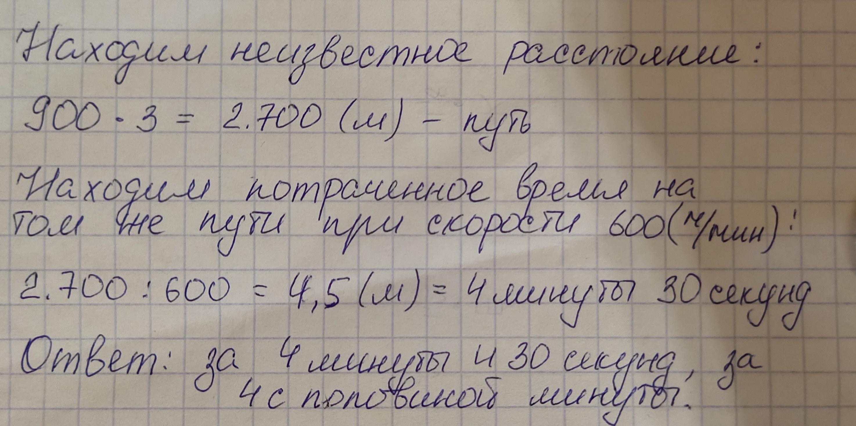 2. 2700:600=4,5 мин - за это время пробежит в новой скоростью