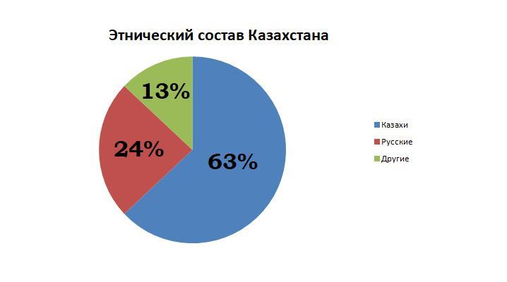 Задание 3. На основе данных этнического состава Казахстана, составить круговую диаграмму.
