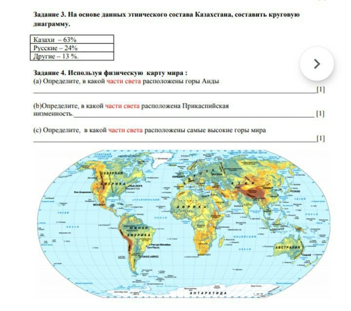 (c) Определите, в какой части света расположены самые высокие горы мира.