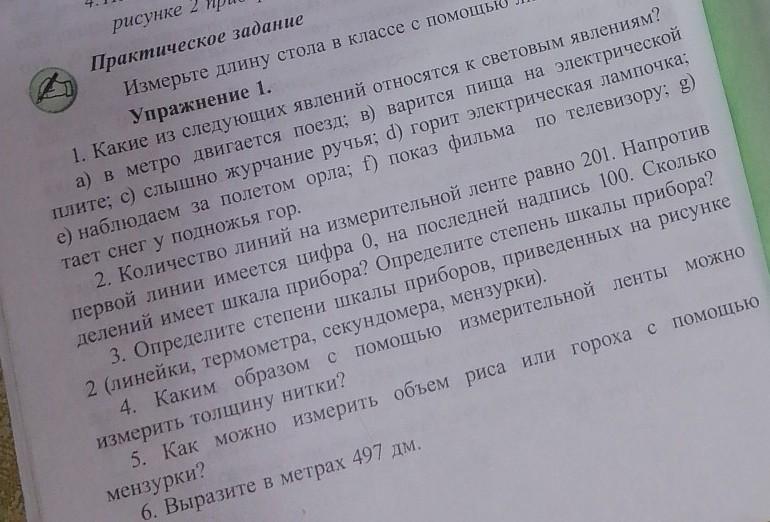 5.берём мензурку наливает воду определенный объем , записываем объем бросаем Туда горох или рис , проверяем на сколько увеличелась объем воды , вышитываем разницу между 1 объем и 2 . и получаем объем гороха или риса ...
