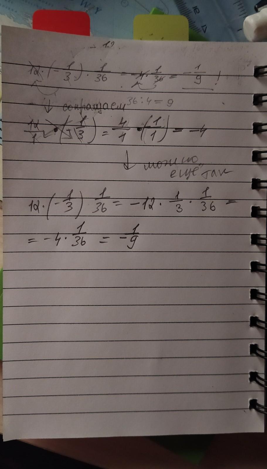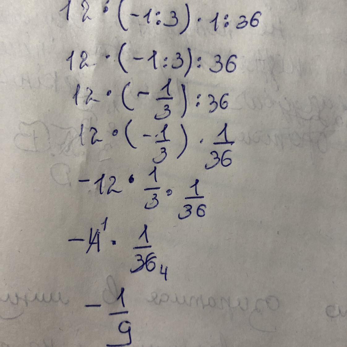 12 * ( -1/3)* 1/36 пожалуйста решите и объясните пример прошу