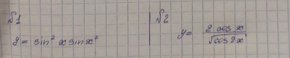 1)\ \ y=sin^2x\cdot sinx^2\\\\y'=(sin^2x)'\cdot sinx^2+sin^2x\cdot (sinx^2)'=\\\\=2\, sinx\cdot cosx\cdot sinx^2+sin^2x\cdot cosx^2\cdot 2x=\\\\=sin2x\cdot sinx^2+2x\cdot sin^2x\cdot cosx^2