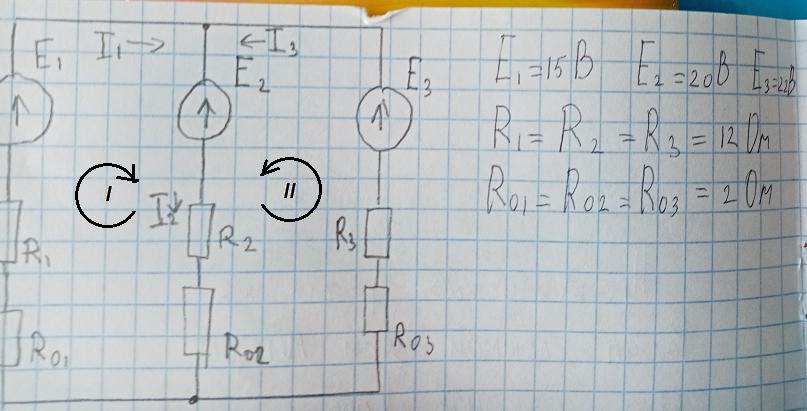 I₃·(R₃+R₀₃) + I₂·(R₂+R₀₂) = E₃ - E₂