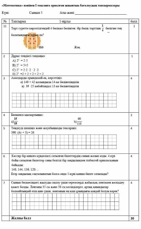 - 1)иә 2)с) 3тапсырма а)182:14=13 в)975:13=75 4тапсырма а)15. 5.