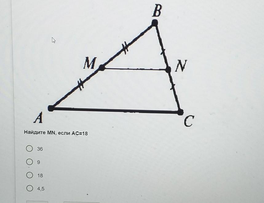 так как 18 и 36 не могут быть, потому то они больше или равны АС,остается4,5 это булет меньше, потому что 18:2=9