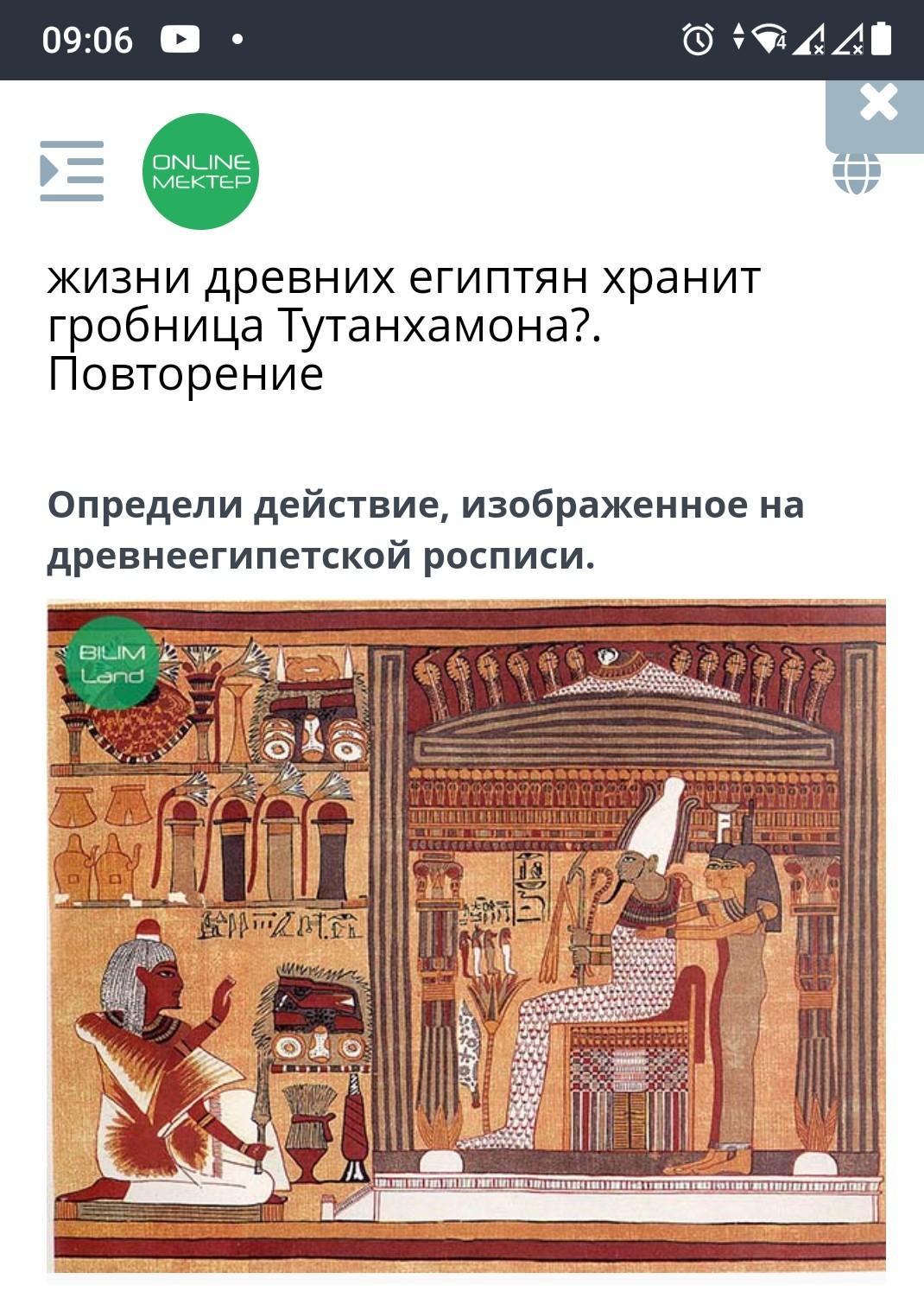 Определи действие, изображенное на древнеегипетской росписи.