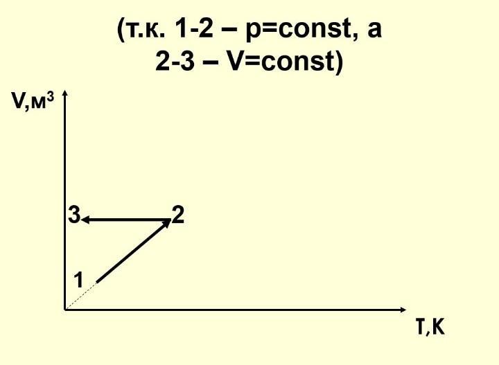 2 - 3 V = const - изохорный процесс (изохорное охлаждение)