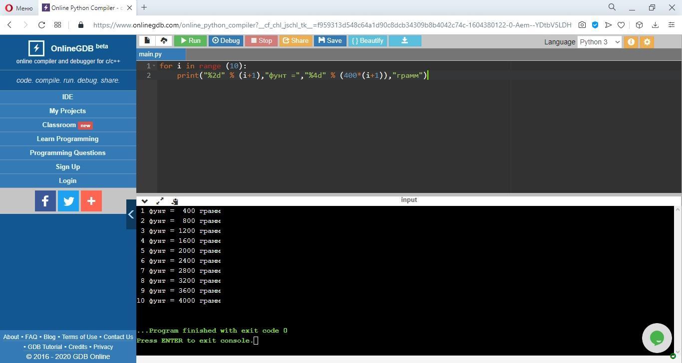 print("%2d" % (i+1),"фунт =","%4d" % (400*(i+1)),"грамм")