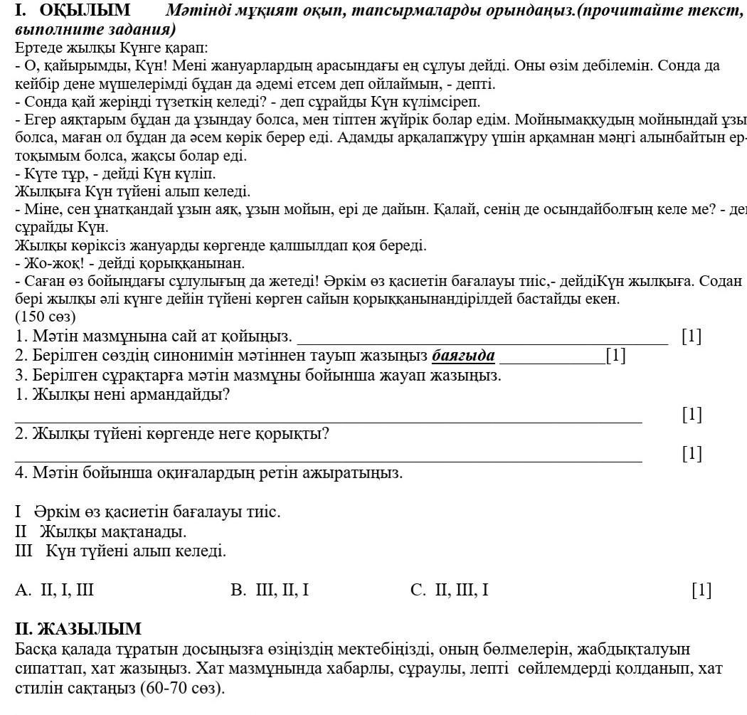 1.Жылқы мен күннің әңгімесі или өз сұлулығыңды бағалау керек или өзің білесің көп ат бар ғой