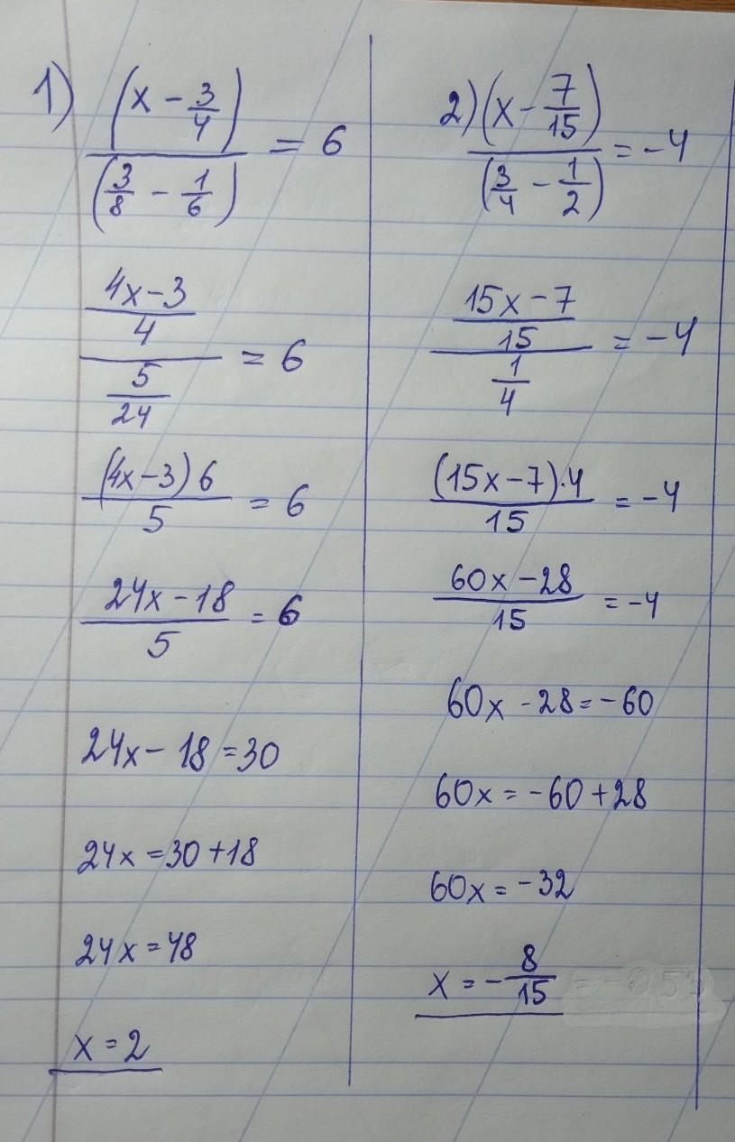 (х-7/15)/(3/4-1/2)=-4
