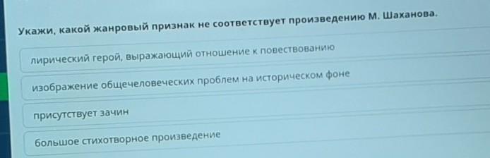 Укажи, какой жанровый признак не соответствует произведению М. Шаханова.