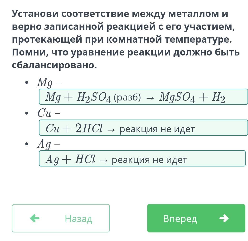 Установи соответствие между металлом и верно записанной реакцией с его участием, протекающей