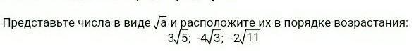 В порядке возрастания -√48, -√45,-√44, а если исходные, то расположим так -4√3; -3√5; -2√11