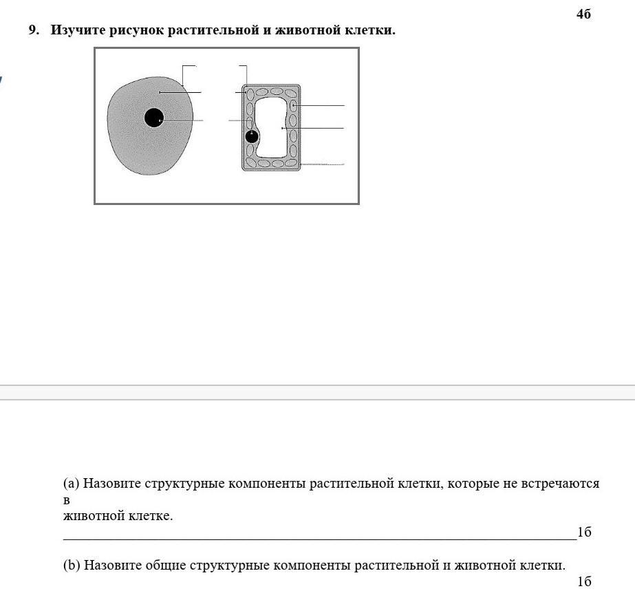 (b) Назовите общие структурные компоненты растительной и животной клетки.