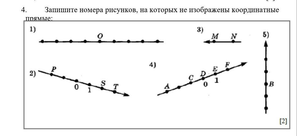 4. Запишите номера рисунков, на которых не изображены координатные прямые: