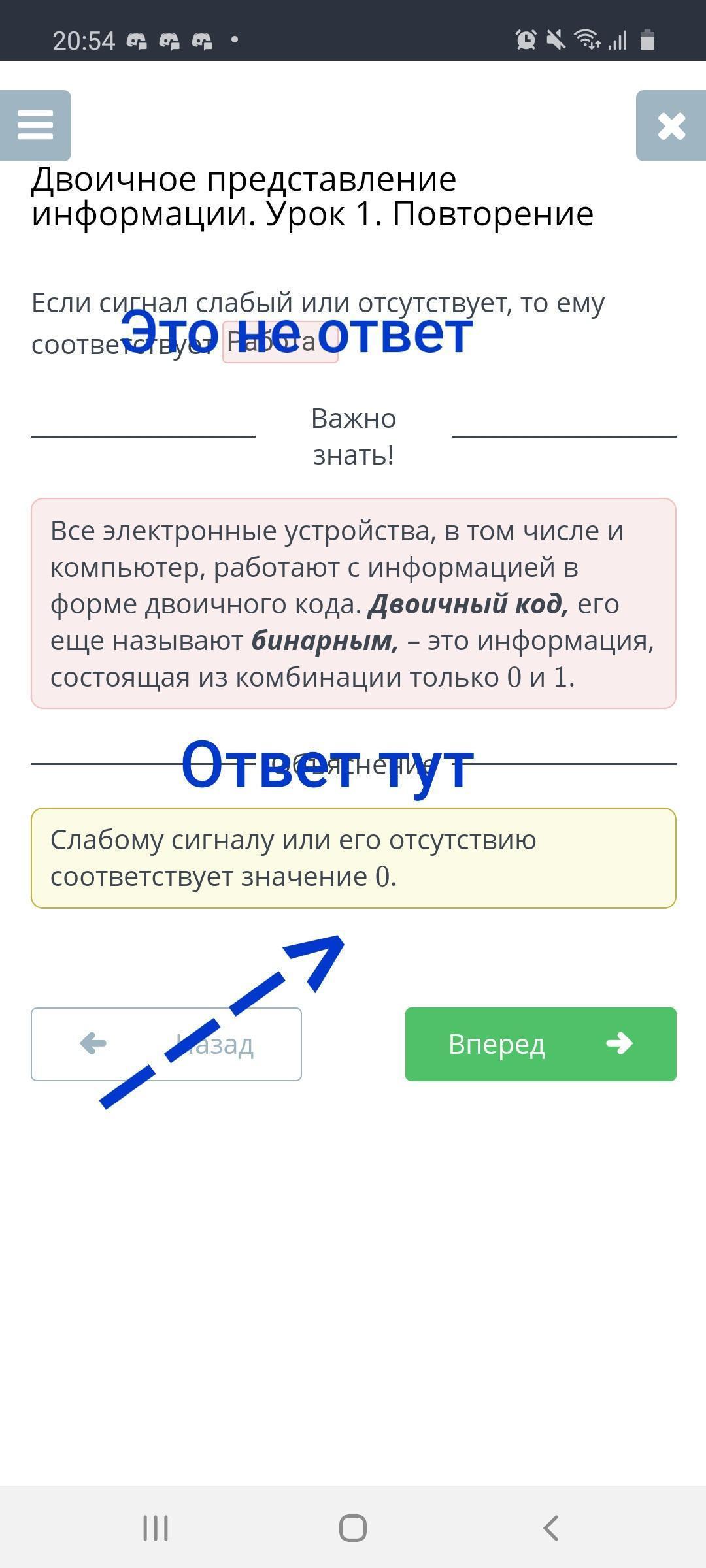 .Если сигнал слабый или отсутствует то ему соответствует 0