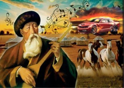 В степях Казахстана перекачовывали люди они скакали на конях, пели кюй потом пришёл на место лошадей машины а на место кюя пришла музыка