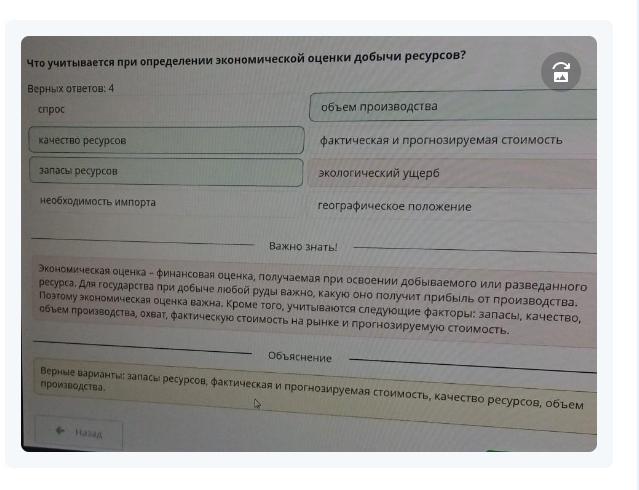 Что учитывается при определении экономической оценки добычи ресурсов?