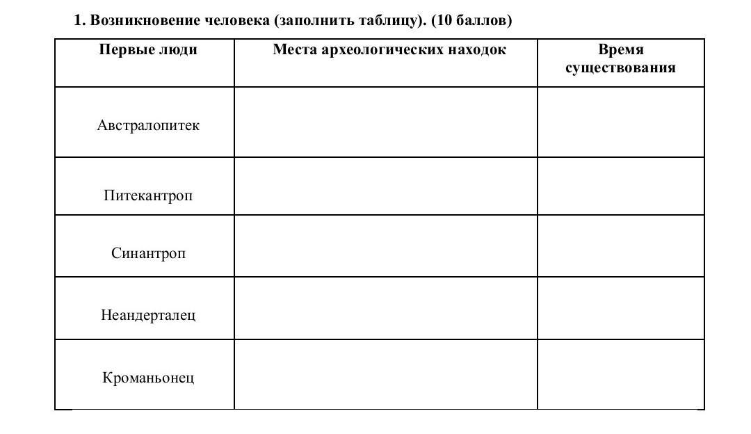 Заполни таблицу , возникновение человека.Срочнооооо , 15 мин максимум .Даю 15 баллов
