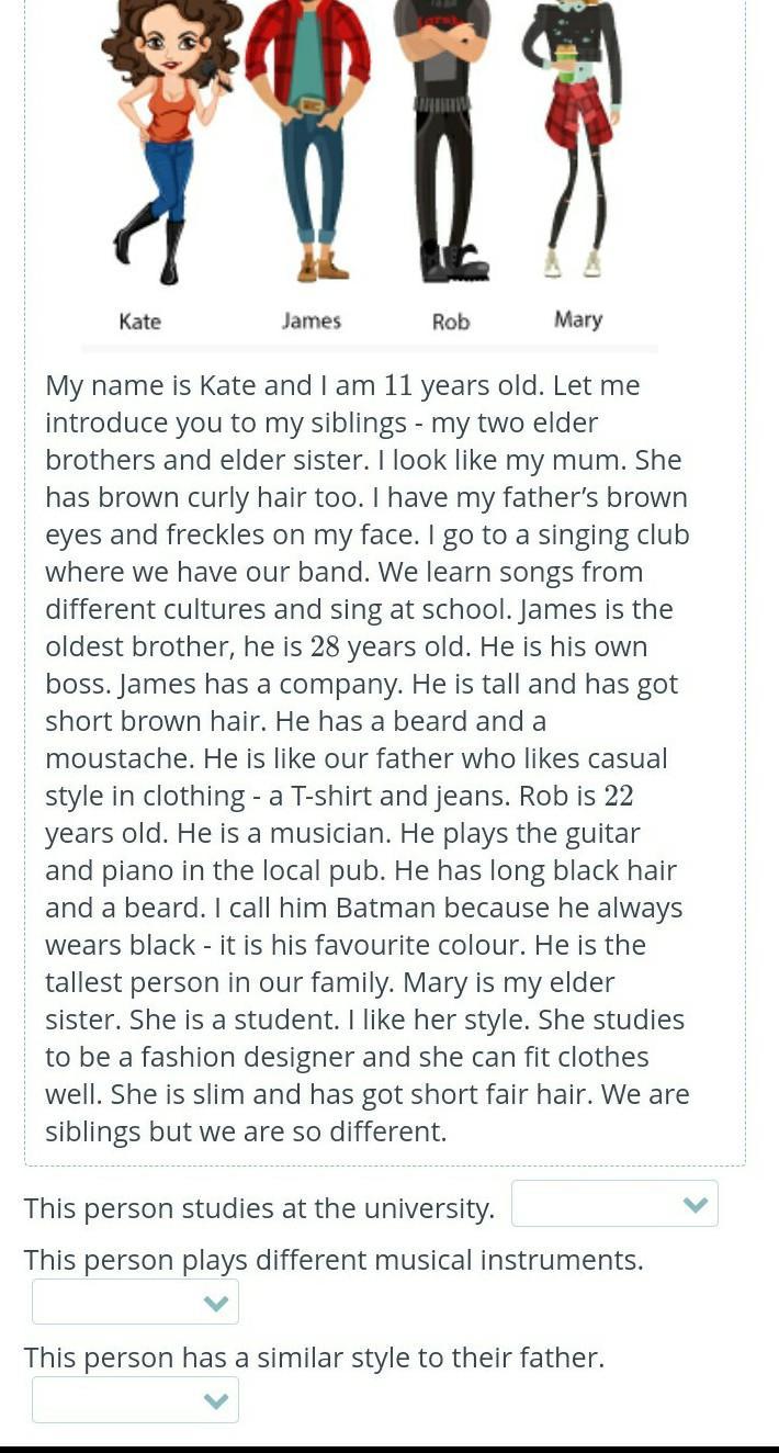 Read Kate’s description of her family and match the person to his/her description.