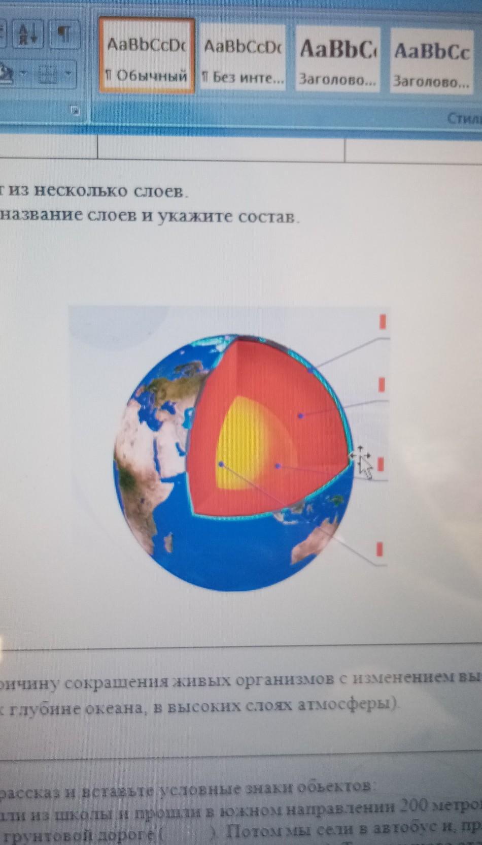 Ответ:1.поверстная корка2.каменные руды 3. обочлока ядра 4 ядро