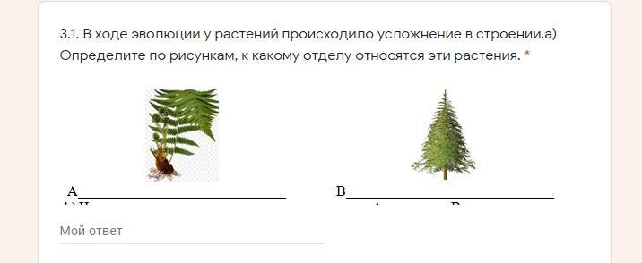 В ходе эволюции у растений происходило усложнение в строении.а) Определите по рисункам, к какому отделу относятся эти растения