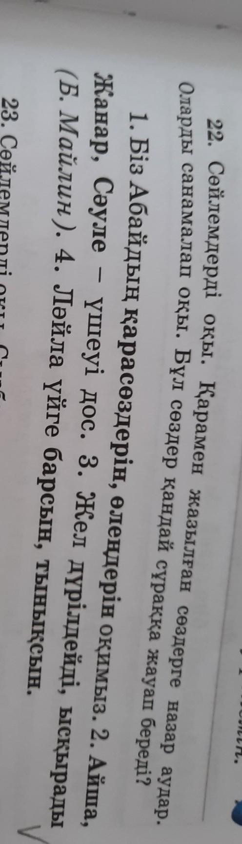 22. Сөйлемдерді оқы. Қарамен жазылған сөздерге назар аудар-