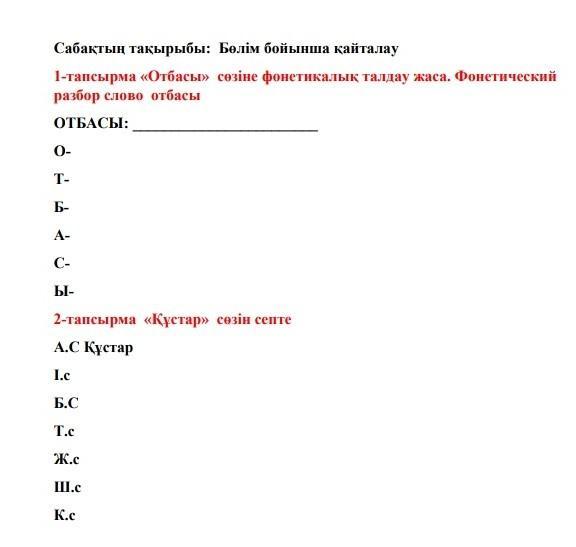 отбасы: 6 әріп, 3 буын, 6 дыбыс