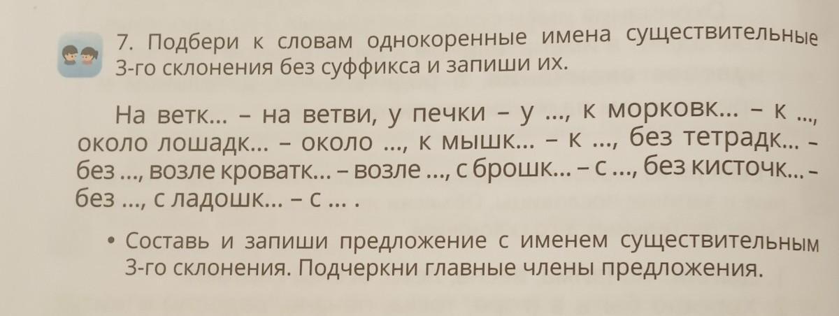 1. На ветке - на ветви, у печки - у печи, к морковке - к моркови, около лошадки - около лошади, к мышке - к мыши, бед тетрадки - без тетради, возле кроватки - возле кровати, с брошки - с броши, без кисточки - без кисти, с ладошки - с ладони.