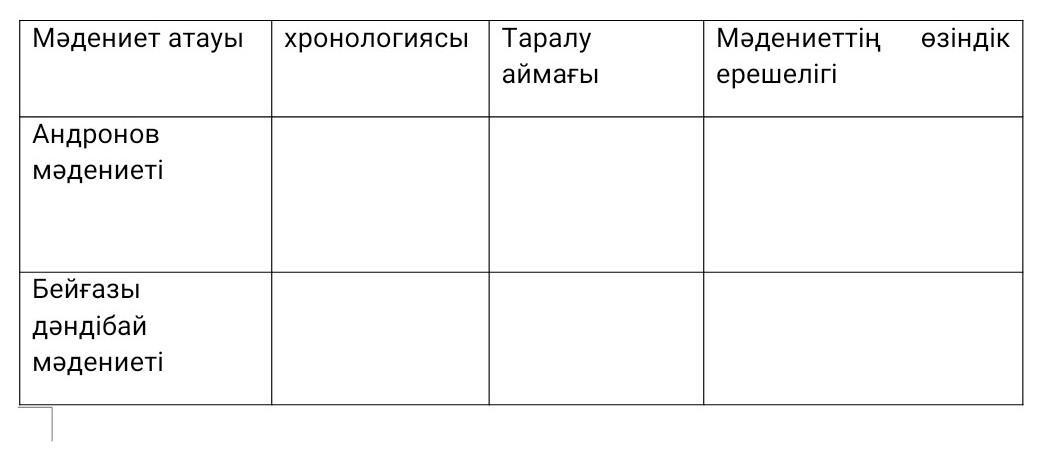 Андрон мәдениеті. Қазақстанда қола дәуіріндегі тайпалардан көптеген тұрақтар, кен ескерткіштер қалған. Бұларды Андрон мәдениеті деп атайды. Бұл мәдениет – Еуразиядағы ең ірі қола дәуірінің мәдениеті. Андрон мәдениетінің бірінші ескерткіші. 1914 жылы Оңтүстік Сібір жеріндегі Ачинск қаласының жанындағы Андроново қонысынан табылған
