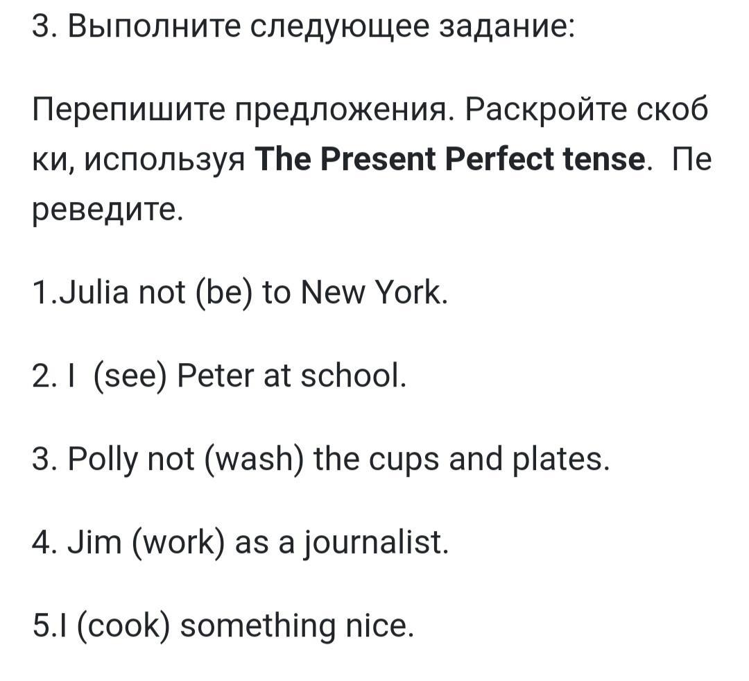 1. Julia has not been to New York. (Джулия не была в Нью-Йорке.)