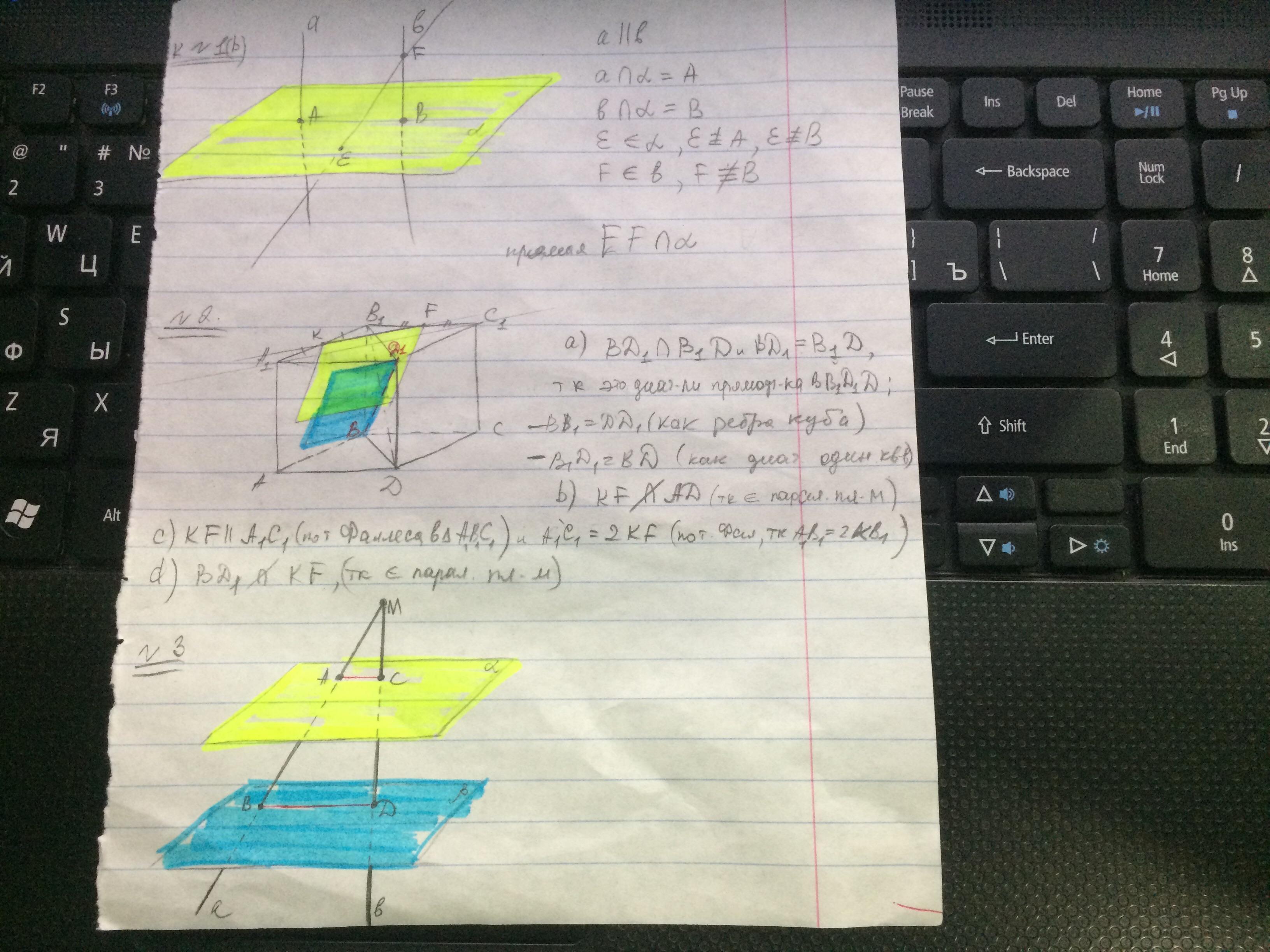 внимание в пункте d чуточку сложнее. нужно увидеть в пространстве плоскость(покрашена жёлтым ), содержащую KF, и параллельную плоскости , содержащей BD₁ (покрашена голубым).