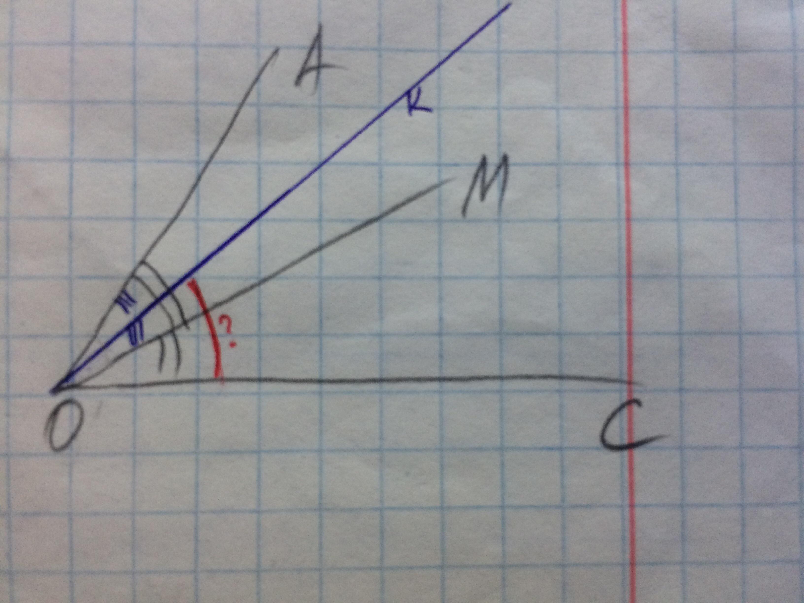 уг КОС=угКОМ+угМОС=20+40=60°