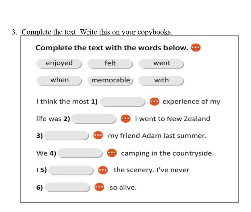 1)enjoyed 2) when 3) memorable 4) with 5) felt 6)went